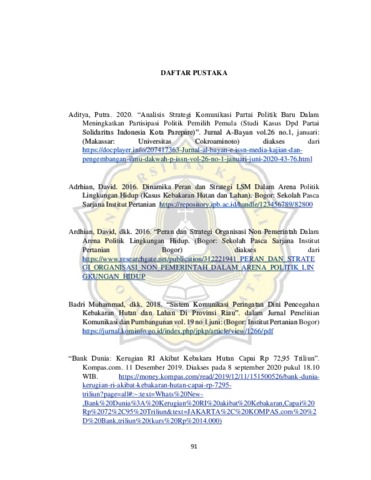 SAFIRA, FITRANZA (2022) KOMUNIKASI POLITIK WAHANA LINGKUNGAN HIDUP INDONESIA (WALHI) MELALUI E-NEWSLETTER DALAM RESPON ISU KEBAKARAN HUTAN DAN LAHAN INDONESIA TAHUN 2019. S1 thesis, Universitas Katholik Soegijapranata Semarang.