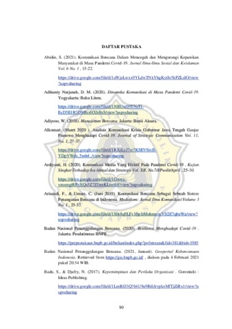 Penelitian ini dilatar belakangi tentang pemanfaatan instagram Dinas Kesehatan Kota Semarang sebagai media komunikasi bencana penanganan covid-19 di Kota Semarang periode bulan Maret-Desember 2020. Kota Semarang merupakan salah satu zona merah kasus covid-19 sejak ditetapkan pada akhir Februari 2020. Komunikasi media yang dilakukan pemerintah Indonesia juga mendapatkan penilaian negatif terkait bencana covid-19. Maka dari itu tujuan peneliti adalah untuk mengetahui bagaimana pemanfaatan instagram Dinas Kesehatan Kota Semarang @dkksemarang sebagai media komunikasi bencana dalam penanganan covid-19 di Kota Semarang periode bulan Maret-Desember 2020. Peneliti menggunakan tipe deskriptif kualitatif dalam metode penelitian. Hasil yang diperoleh menunjukkan media sosial instagram menjadi media yang dipilih Dinas Kesehatan Kota Semarang dalam mengkomunikasikan penanganan covid-19. Hal tersebut dikarenakan fitur yang disajikan sangat beragam dan mudah untuk digunakan, dengan begitu informasi dan pesan yang akan disampaikan kepada masyarakat dapat diterima dengan mudah. Dalam mengkomunikasikan penanganan covid-19, Dinas Kesehatan Kota Semarang memproduksi dan mengunggah konten sebanyak empat materi, yaitu; 1. Data kasus covid-19 di Kota Semarang, 2. Edukasi covid-19, 3. Informasi covid-19, 4. Kegiatan Dinas Kesehatan Kota Semarang terkait penanganan covid-19 di Kota Semarang. Dalam mengkomunikasikan bencana covid-19 di Kota Semarang, Dinas Kesehatan Kota Semarang melakukan tahapan komunikasi sebelum terjadinya bencana dan komunikasi saat terjadinya bencana.
