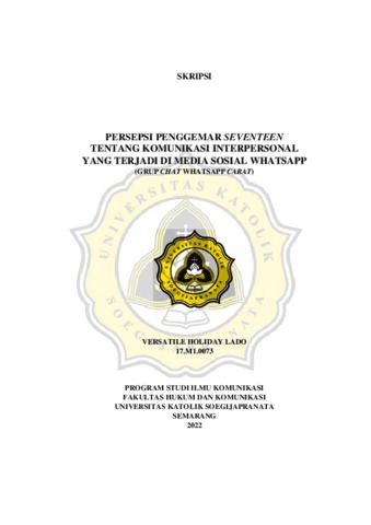 LADO, VERSATILE HOLIDAY (2022) PERSEPSI PENGGEMAR SEVENTEEN TENTANG KOMUNIKASI INTERPERSONAL YANG TERJADI DI MEDIA SOSIAL WHATSAPP (GRUP CHAT WHATSAPP CARAT). S1 thesis, Universitas Katholik Soegijapranata Semarang.