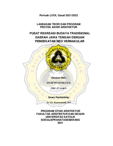 PITALOKA K.D., DYAH (2022) PUSAT REKREASI BUDAYA TRADISIONAL DAERAH JAWA TENGAH DENGAN PENDEKATAN NEO VERNAKULAR. S1 thesis, UNIVERSITAS KATOLIK SOEGIJAPRANATA.