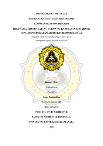 ANGGORO, YOGI (2022) RUSUNAWA KHUSUS LAJANG DI BAWEN, KABUPATEN SEMARANG DENGAN PENDEKATAN ARSITEKTUR KONTEKSTUAL. S1 thesis, UNIVERSITAS KATOLIK SOEGIJAPRANATA.