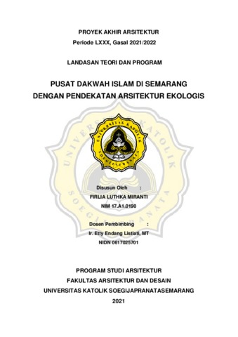 MIRANTI, FIRLIA LUTHKA (2022) PUSAT DAKWAH ISLAM DI SEMARANG DENGAN PENDEKATAN ARSITEKTUR EKOLOGIS. S1 thesis, UNIVERSITAS KATOLIK SOEGIJAPRANATA.