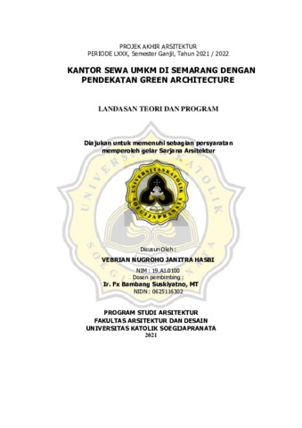 HASBI, VEBRIAN NUGROHO JANITRA (2022) KANTOR SEWA UMKM DI SEMARANG DENGAN PENDEKATAN GREEN ARCHITECTURE. S1 thesis, Universitas Katolik Soegijapranata Semarang.