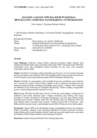 Santoso, Ferry (2020) ANALISIS CAPAIAN SPM KIA-KB DI PUSKESMAS BENGKAYANG, LEDO DAN JAGOI BABANG: STUDI BASELINE. Vitasphere : Jurnal Manajemen Kualitas Hidup, 1 (1). pp. 11-21. ISSN 2085-7683