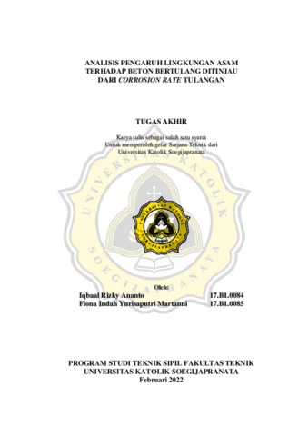 Ananto, Iqbaal Rizky and Martanni, Fiona Indah Yurisaputri (2022) ANALISIS PENGARUH LINGKUNGAN ASAM TERHADAP BETON BERTULANG DITINJAU DARI CORROSION RATE TULANGAN. Other thesis, Universitas Katholik Soegijapranata Semarang.