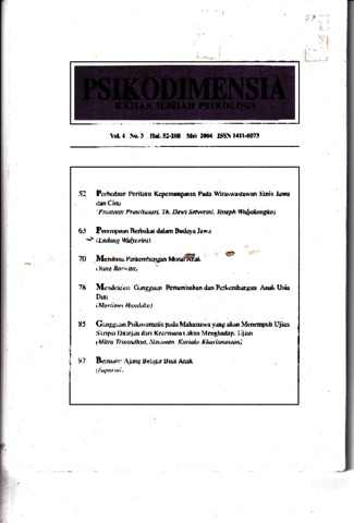 Widyorini, Endang Perempuan Berbakat dalam Budaya Jawa. Psikodimensia. ISSN 1411-6073