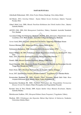 RSUD dr.H. Soewono Kendal merupakan salah satu unit pelayanan kesehatan yang ditunjuk oleh Pemerintah sebagai rumah sakit rujukan covid-19 bagi masyarakat Kendal. Adanya ketentuan ini membuat tenaga medis dan tenaga kesehatan yang bertugas di RSUD dr.H.Soewondo Kendal khususnya di ruang IGD harus melakukan kontak fisik dan kontak erat dengan pasien terduga covid-19 maupun yang sudah positif covid-19. Hal ini menyebabkan risiko penularan covid-19 kepada petugas kesehatan menjadi besar, sehingga perlu adanya pelindungan hukum bagi tenaga medis dan tenaga kesehatan yang bertugas di ruang IGD sebagai salah satu pintu utama masuknya pasien di rumah sakit. Penelitian ini merupakan penelitian yuridis sosiologis dengan spesifikasi penelitian desktiptif-analitis. Penelitian ini menggunakan data primer dan data sekunder. Pengumpulan data pada penelitian ini dilakukan melalui studi lapangan dan studi kepustakaan untuk memperoleh data yang diperlukan. Metode analisis data yang digunakan adalah kualitatif. Berdasarkan hasil penelitian dapat disimpulkan bahwa pelindungan hukum bagi tenaga kesehatan yang bertugas di ruang IGD RSUD dr.H.Soewondo Kendal terhadap risiko penularan covid-19 didasarkan pada pengaturan umum tercantum pada Kepmenkes No.HK.01.07/MENKES/328/2020, Permenkes No. 9 Th 2020, Kepmenkes No.HK.01.07/MENKES/327/2020, Kepmenkes No. HK.01.07/MENKES/4239/2021, surat edaran IDI No. 02854/PB/A.3/03/2020 dan pengaturan khusus berupa Perbup Kendal No. 65 Th 2009, Perdir No. 900 Th 2019, Kepdir No. 455 Th 2020. Pelaksanaan pelindungan hukum bagi tenaga kesehatan di IGD terhadap risiko penularan covid-19 sudah dilaksanakan dengan baik melalui pelindungan hukum preventif berupa skrining, triase, pembentukan satgas 3 M, adanya berbagai peraturan internal terkait PPI di masa pandemi, pemberian asuransi kesehatan dan vaksinasi covid-19, pelindungan hukum represif dilakukan dengan pemberian layanan kesehatan bagi tenaga kesehatan yang terpapar serta pemberian insentif dan santunan kematian. Terdapat faktor yang menghambat dan mendukung pelaksanaannya yaitu faktor sosial, faktor yuridis dan faktor teknis. Akibat faktor-faktor tersebut adalah di IGD masih terjadi penumpukan pasien karena faktor penghambat menyebabkan risiko penularan tetap masih ada karena hal tersebut.