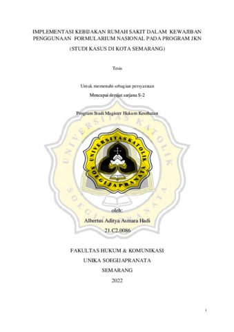 Hadi, Albertus Aditya Asmara (2022) IMPLEMENTASI KEBIJAKAN RUMAH SAKIT DALAM KEWAJIBAN PENGGUNAAN FORMULARIUM NASIONAL PADA PROGRAM JKN (STUDI KASUS DI KOTA SEMARANG). Masters thesis, Universitas Katholik Soegijapranata Semarang.