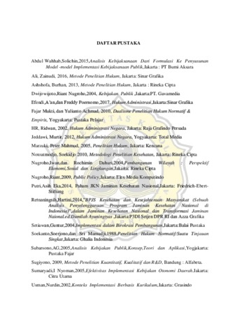 Dalam era pelayanan JKN Pemerintah harus menjamin Ketersediaan dan Keterjangkauan obat yang berada di seluruh fasilitas pelayanaan Kesehatan agar program JKN dapat terus berjalan maka dari itulah Dibuat Formularium Nasional yang akan bermanfaat sebagai acuan bagi penulis resep, mengoptimalkan pelayanan kepada pasien, memudahkan perencanaan dan penyediaan obat di fasilitas pelayanan kesehatan.Penelitian ini memiliki tujuan Untuk mengetahui kebijakan Penggunaan obat Formularium Nasional, implementasi kebijakan penggunaan Formularium Nasional di Rumah Sakit,dan faktor-faktor yang berpengaruh dalam implementasi kebijakan penggunaan Formularium Nasional di Rumah Sakit. Penelitian ini menggunakan pendetkatan yuridis sosiologis dengan spesifikasi deskriptif analitik.data penelitian terdiri dari data primer dan data sekunder dengan pengumpulan data melalui studi lapangan dan studi pustaka.sampel yang diambil berdasarkan adalah non probability sampling tipe purposive.metode Penyajian data dalam bentuk narasi dan gambar dengan menggunakan analisa data kualitatif. Dari hasil penelitian menunjukan bahwa Kebijakan tantang penggunaan Formularium Nasional dirumah sakit secara umum sudah jelas yang telah diatur melalui Keputusan Direktur Rumah Sakit ataupun peraturan direktur Rumah Sakit sehingga dalam implementasi dilapangannya para dokter dan tenaga kesehatan lainnya yang ada di dalam Rumah Sakit mempunyai dasar hukum dalam menerapkan implementasi penggunaan Formularium Nasional meskipun Implementasi penggunaan Formularium Nasional sudah didasarkan pada aturan yang berlaku tetapi tetap saja hal ini belum maksimal Hal ini disebabkan oleh beberapa faktor antara lain yaitu faktor yuridis yang berpengaruh adalah adanya obat yang tidak tercantum dalam Formularium Nasional,kemudian faktor sosial adalah adanya anggapan dokter bahwa Formularium Nasional membatasi kebebasan dokter dalam meresepkan obat kepada pasien selanjutnya faktor teknis yaitu lamanya proses regulasi pengadaan obat Formularium Nasional di distributor