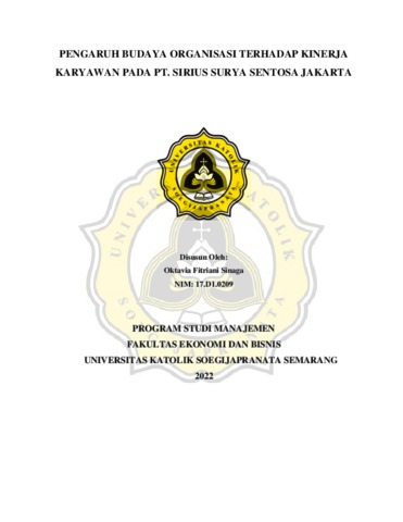 Sinaga, Oktavia Fitriani (2022) PENGARUH BUDAYA ORGANISASI TERHADAP KINERJA KARYAWAN PADA PT. SIRIUS SURYA SENTOSA JAKARTA. Other thesis, Universitas Katholik Soegijapranata Semarang.