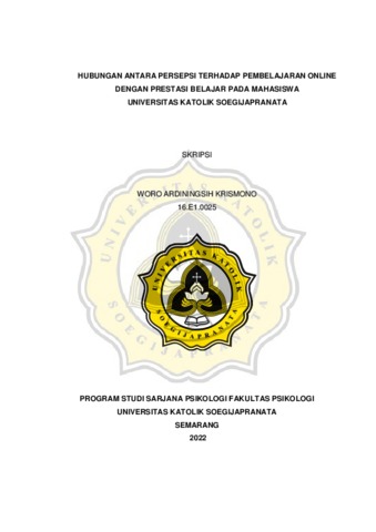 KRISMONO, WORO ARDININGSIH (2022) HUBUNGAN ANTARA PERSEPSI TERHADAP PEMBELAJARAN ONLINE DENGAN PRESTASI BELAJAR PADA MAHASISWA UNIVERSITAS KATOLIK SOEGIJAPRANATA. S1 thesis, Universitas Katholik Soegijapranata Semarang.