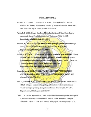 GUNAWAN, THOMAS (2022) TINJAUAN EXPECTATION CONFIRMATION THEORY DALAM PEMANFAATAN GAME SIMULASI BISNIS. Other thesis, Universitas Katholik Soegijapranata Semarang.