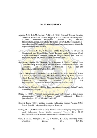 Auditor bertanggung jawab untuk menyampaikan audit judgement yang akurat kepada kliennya. Audit judgement sendiri dipengaruhi oleh berbagai macam faktor diantaranya adalah tekanan ketaatan, pengalaman, kompleksitas tugas, audit tenure, perilaku disfungsional, self-efficacy, dan skeptisisme profesional. Populasi dalam penelitian ini merupakan auditor eksternal yang berjumlah sebanyak 59 orang. Variabel independen yang digunakan dalam penelitian ini adalah tekanan ketaatan, pengalaman, kompleksitas tugas, audit tenure, perilaku disfungsional, self-efficacy, dan skeptisisme profesional. Hasil penelitian ini menunjukkan bahwa audit tenure berpengaruh positif terhadap audit judgement, tekanan ketaatan, Pengalaman, dan skeptisisme profesional berpengaruh negatif terhadap audit judgement, sedangkan Kompleksitas tugas, perilaku Disfungsional, self-efficacy dan skeptisisme profesional tidak berpengaruh terhadap audit judgement