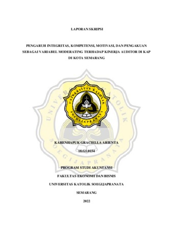 ARIENTA, KARENHAPUK GRACIELLA (2022) PENGARUH INTEGRITAS, KOMPETENSI, MOTIVASI, DAN PENGAKUAN SEBAGAI VARIABEL MODERATING TERHADAP KINERJA AUDITOR DI KAP DI KOTA SEMARANG. Other thesis, Universitas Katholik Soegijapranata Semarang.