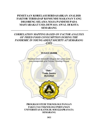 Pada awal tahun 2020, Indonesia mengalami masa pandemi COVID-19 yang menyebabkan peningkatan maupun penurunan pada pola konsumsi makanan dan pertumbuhan ekonomi Indonesia. Peningkatan pertumbuhan ekonomi Indonsia dapat disebabkan salah satunya oleh aktivitas konsumsi masyarakat dan kegiatan ekspor impor komoditas pangan yang membaik,. Indonesia merupakan salah satu eksportir dan negara penghasil minyak nabati kelapa sawit terbesar yang biasa dimanfaatkan menjadi minyak goreng. Sebanyak 89,7% masyarakat Indonesia mengonsumsi minyak goreng kelapa sawit. Pola konsumsi minyak goreng yang meningkat dapat pula meningkatkan risiko terkena Penyakit Tidak Menular (PTM). Dibalik peningkatan pola konsumsi makanan yang digoreng tersebut, belum diketahui faktor apa yang menjadi penentu dan pendorong seseorang mengonsumsi makanan yang digoreng. Secara umum, analisis faktor hanya berupa pendugaan saja menggunakan metode KMO-MSA dan CFA saja tanpa adanya analisis secara kuantitatif kekuatan masing-masing variabel yang disajikan dalam bentuk numerik. Oleh sebab itu, pada penelitian ini perlu dilakukan kombinasi teknik antara analisis faktor dengan analisis pemetaan korelasi yang terdiri atas nilai korelasi bivariat dan parsial sehingga dapat diketahui perbedaan yang lebih nyata antar variabel yang diuji. Tujuan dari penelitian ini adalah untuk mendeskripsikan dan merumuskan kelayakan serta hubungan antara faktor-faktor yang mempengaruhi konsumsi makanan yang digoreng baik di dalam maupun di luar rumah tangga pada masyarakat dewasa awal usia 26-35 tahun selama pandemi di Kota Semarang. Penelitian dilakukan dengan metode survei secara online melalui Google Form yang diawali dengan studi literatur, pembuatan, dan penyebaran kuesioner melalui media sosial. Variabel bebas dari penelitian antara lain kondisi sosial yang terdiri atas pendapatan per bulan, jumlah anggota keluarga, persen pegeluaran satu kali makan per bulan, serta variabel praktik konsumsi makanan yang digoreng, pengetahuan penggunaan minyak goreng, dan kesadaran risiko konsumsi makanan yang digoreng dengan masing-masing variabel terdiri atas indikator pertanyaan terkait. Variabel terikat dalam penelitian ini adalah frekuensi konsumsi bahan pangan yang digoreng berupa daging unggas, ruminansia, akuatik, camilan, dan lauk lain baik di dalam maupun di luar rumah tangga. Populasi dari penelitian ini adalah masyarakat yang berdomisili di Kota Semarang. Sampel diambil dengan teknik purposive random sampling. Jumlah sampel dalam penelitian ini dihitung dengan persamaan Altman. Responden ditentukan berdasarkan keragaman atau nilai P yang mengacu pada distribusi Kolmogorov pada tingkat kepercayaan 95%. Dari hasil penelitian, diperoleh sebanyak 360 responden yang memenuhi kriteria untuk dijadikan bahan penelitian. Dari hasil analisis data, variabel kondisi sosial menjadi faktor penentu dari pola konsumsi makanan yang digoreng baik di dalam maupun di luar rumah tangga. Selain itu, diperoleh pula nilai extraction terendah pada variabel praktik konsumsi yang digoreng sebesar 0,060, akan tetapi setelah dilakukan analisis pemetaan nilai korelasi, variabel tersebut memiliki nilai korelasi parsial tertinggi. Dapat ditarik kesimpulan bahwa, selama pandemi masyarakat dewasa awal usia 26-35 tahun di Kota Semarang, pola konsumsi makanan yang digoreng di dalam rumah tangga yang dipengaruhi oleh kondisi sosial diperkuat oleh praktik konsumsi makanan yang digoreng. Sedangkan pola konsumsi makanan yang digoreng di luar rumah tangga yang dipengaruhi oleh kondisi sosial diperkuat oleh kesadaran risiko konsumsi makanan yang digoreng. Serta, analisis Correlation Mapping merupakan uji lanjutan yang dilakukan untuk mencari interaksi antar faktor yang telah ditentukan dengan uji KMO-MSA dan telah diuji kelayakannya dengan uji CFA.