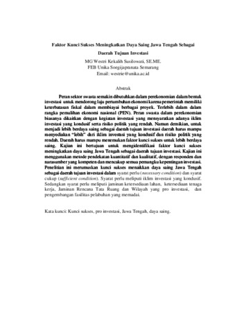 Faktor Kunci Sukses Meningkatkan Dayasaing Jawa Tengah Sebagai Daerah Tujuan Investasi- Westri Unika.pdf