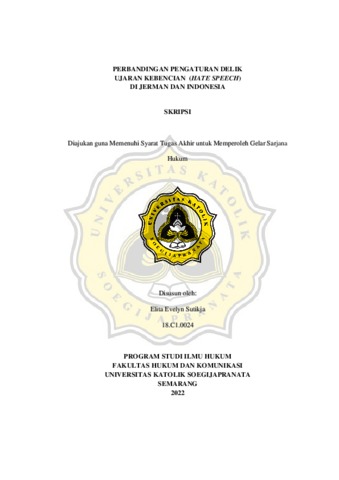 SUTIKJA, ELITA EVELYN (2022) PERBANDINGAN PENGATURAN DELIK UJARAN KEBENCIAN (HATE SPEECH) DI JERMAN DAN INDONESIA. S1 thesis, Universitas Katholik Soegijapranata Semarang.