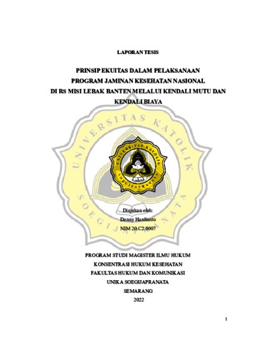 Hardianto, Denny (2022) PRINSIP EKUITAS DALAM PELAKSANAAN PROGRAM JAMINAN KESEHATAN NASIONAL DI RS MISI LEBAK BANTEN MELALUI KENDALI MUTU DAN KENDALI BIAYA. Masters thesis, Universitas Katholik Soegijapranata Semarang.