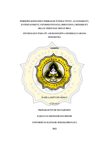 ADITYAWARMAN, RAKKA (2022) PERSEPSI KONSUMEN TERHADAP INTERACTIVITY, ACCESSIBILITY, ENTERTAINMENT, INFORMATIVENESS, IRRITATION, CREDIBILITY IKLAN VIDEO DAN MINAT BELI (STUDI KASUS PADA PT. ASURANSI JIWA GENERALI CABANG SEMARANG). Other thesis, Universitas Katholik Soegijapranata Semarang.
