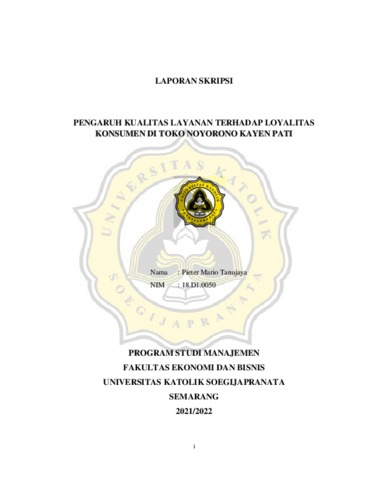 Tanujaya, Pieter Mario (2022) PENGARUH KUALITAS LAYANAN TERHADAP LOYALITAS KONSUMEN DI TOKO NOYORONO KAYEN PATI. Other thesis, Universitas Katholik Soegijapranata Semarang.