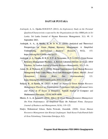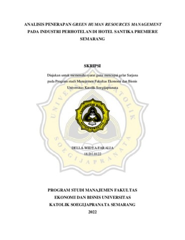 FARALIA, DELLA WIDYA (2022) ANALISIS PENERAPAN GREEN HUMAN RESOURCES MANAGEMENT PADA INDUSTRI PERHOTELAN DI HOTEL SANTIKA PREMIERE SEMARANG. Other thesis, Universitas Katholik Soegijapranata Semarang.