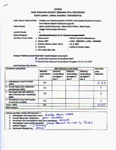 Pratiwi, Alberta Rika (Peer Review) Isolation and Characterization of Silaffin that Catalyze Biosilica Formation from Marine Diatom Chaetoceros gracilis. Universitas Katolik Soegijapranata. (Unpublished)