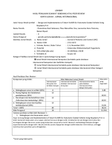 Peer Final Design and Implementation of Smart Forklift for Automatic Guided Vehicle Using Raspberry Pi 4