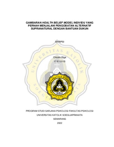 ELGA, CHIRSTIN (2022) GAMBARAN HEALTH BELIEF MODEL INDIVIDU YANG PERNAH MENJALANI PENGOBATAN ALTERNATIF SUPRANATURAL DENGAN BANTUAN DUKUN. S1 thesis, Universitas Katholik Soegijapranata Semarang.