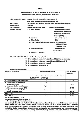 Setiawan, Florentinus Budi Peer review Center of Gravity Method for Finding Center of Laser Beam Projection on Landslide Measurement. Unika.