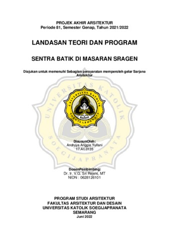 YULFANI, ANDRUYA ANGGIE (2022) SENTRA BATIK DI MASARAN SRAGEN. Other thesis, Unika Soegijapranata Semarang.