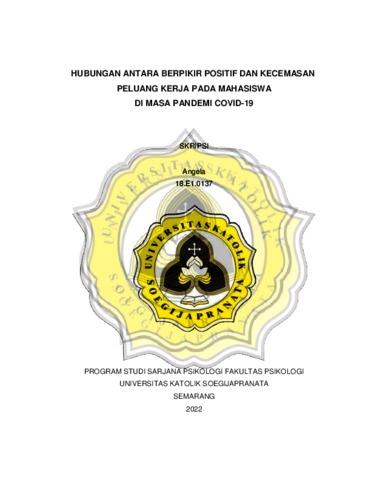 ANGELA, ANGELA (2022) HUBUNGAN ANTARA BERPIKIR POSITIF DAN KECEMASAN PELUANG KERJA PADA MAHASISWA DI MASA PANDEMI COVID-19. S1 thesis, Universitas Katholik Soegijapranata Semarang.