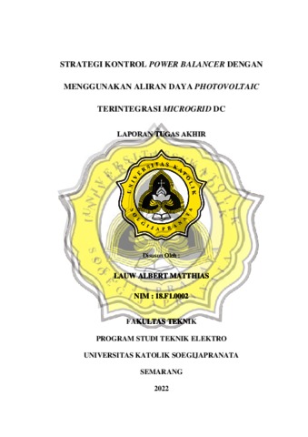 MATTHIAS, LAUW ALBERT (2022) STRATEGI KONTROL POWER BALANCER DENGAN MENGGUNAKAN ALIRAN DAYA PHOTOVOLTAIC TERINTEGRASI MICROGRID DC. Other thesis, Universitas Katholik Soegijapranata Semarang.