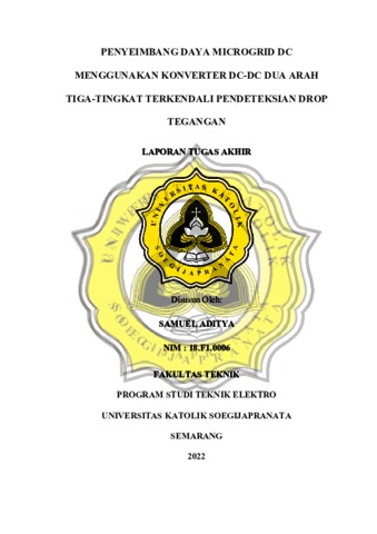 ADITYA, SAMUEL (2022) PENYEIMBANG DAYA MICROGRID DC MENGGUNAKAN KONVERTER DC-DC DUA ARAH TIGA-TINGKAT TERKENDALI PENDETEKSIAN DROP TEGANGAN. Other thesis, Universitas Katholik Soegijapranata Semarang.