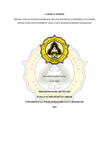 Saputra, Alexandra Natasha (2022) PERANCANGAN SISTEM INFORMASI AKUNTANSI DENGAN PENDEKATAN RAPID APPLICATION DEVELOPMENT (RAD) PADA KOPERASI RODEO SEMARANG. Other thesis, Universitas Katholik Soegijapranata Semarang.