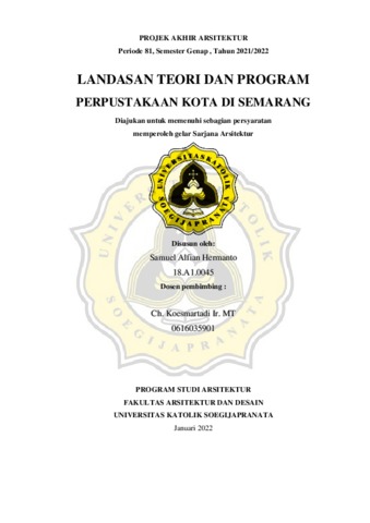 HERMANTO, SAMUEL ALFIAN (2022) PERPUSTAKAAN KOTA DI SEMARANG. S1 thesis, Unika Soegijapranata Semarang.