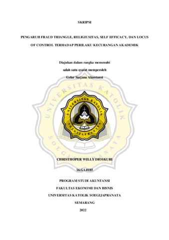 DIOSKURI, CHRISTHOPER WILLY (2022) PENGARUH FRAUD TRIANGLE, RELIGIUSITAS, SELF EFFICACY, DAN LOCUS OF CONTROL TERHADAP PERILAKU KECURANGAN AKADEMIK. Other thesis, Universitas Katholik Soegijapranata Semarang.