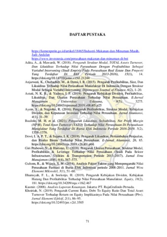 Angelia, Angelia (2022) PENGARUH PROFITABILITAS, LIKUIDITAS, STRUKTUR MODAL, DAN TOTAL ASSET TURNOVER TERHADAP NILAI PERUSAHAAN. Other thesis, Universitas Katholik Soegijapranata Semarang.