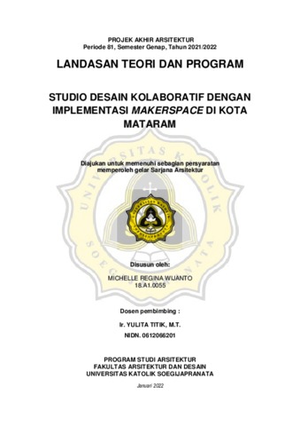 WIJANTO, MICHELLE REGINA (2022) STUDIO DESAIN KOLABORATIF DENGAN IMPLEMENTASI MAKERSPACE DI KOTA MATARAM. Other thesis, Unika Soegijapranata Semarang.