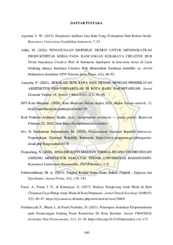 Mengikuti perkembangan zaman di era modern ini, aspek – aspek pola hidup dan aktivitas manusia yang berkembang ikut didampingi dengan pembaruan teknologi – teknologi yang semakin canggih dalam menunjang dan mempermudah suatu kegiatan. Sehingga mau tidak mau manusia dituntut untuk memiliki pengetahuan yang semakin maju, menyesuaikan dengan perkembangan teknologi yang ada. Kebiasaan kaum millennial sekarang, terutama desainer cenderung lebih suka menghabiskan waktu mengerjakan proyek dengan berkeliling pindah dari satu tempat ke tempat lain mencari suasana baru dalam upaya menemukan insipirasi/ ide – ide baru, daripada memiliki ruang bekerja tetap. Terutama bagi desainer muda/ freelancer dan pelajar yang terbiasa mengerjakan proyek bersama diselingi obrolan santai dengan suasana baru untuk menghindari stess dan menyebut bahwa nongkrong membantu mereka dalam proses berpikir kreatif, mencari inspirasi & berkarya (Fauzi et al., 2017). Sebuah survey pada tahun 2018 menyebutkan sebanyak 52% mahasiswa dan pekerja di Indonesia lebih suka mengerjakan tugas di café. Hal ini secara tidak langsung menyalahgunakan fungsi café yang merupakan ruang publik dan sebagai tempat makan menjadi salah suatu ruang kerja bersama (shared workplace). Studio desain Kolaboratif ini menyediakan ruang berkerja yang mengadaptasi konsep ruang makerspace untuk mempermudah aktivitas pelaku desain dalam menciptakan objek karyanya di era digitalisasi ini. Selain menyediakan ruang dan fasilitas, bangunan ini juga turut berperan memberi pengetahuan dan wawasan serta mendukung interaksi sosial para perancang maupun masyarakat umum di Kota Mataram, yang tertarik untuk memperdalam dan mengasah keterampilan dalam mendesain produk yang sesuai dan mencerminkan karakter/ gaya dari masing – masing individu. Kata kunci : Desain, Kolaboratif, Kreativitas, Produktivitas, Studio