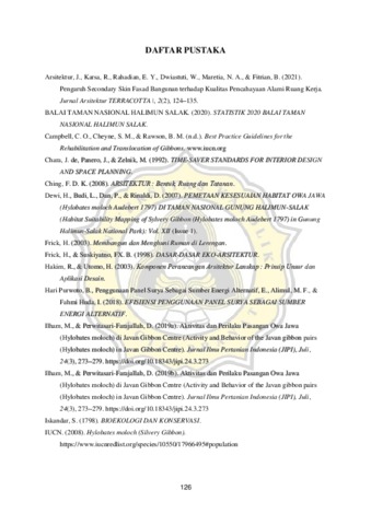 Indonesia merupakan negara yang terkenal dengan kekayaan alamnya. Banyak aneka jenis satwa dan fauna yang hanya dapat dijumpai di Indonesia, salah satunya adalah satwa primata. Dari 518 jenis spesies primata yang ada di dunia,64 jenis primata berada di Indonesia. Namun sangat disayangkan karena sebanyak lebih dari 50% jenis primata tersebut mendekati kepunahan. Menurut IUCN, terdapat sebanyak 23 jenis primata termasuk dalam kategori endemic dan 11 jenis primata termasuk dalam kategori critically endemic. Salah satu jenis primata tersebut adalah owa jawa. Owa jawa memiliki ciri khas yaitu tubuh berwarna keabuabuan dengan sisi atas kepala lebih gelap. Berkurangnya popoulasi owa jawa disebabkan oleh berkurangnya habitat asli mereka akibat degradasi hutan, serta maraknya perbuaran liar dan perdagangan owa jawa. Untuk menyelamatkan owa jawa dapat dilakukan dengan berbagai cara, salah satunya adalah dengan menambah jumlah konservasi owa jawa. Tujuan dari penelitian ini adalah menghadirkan bangunan psuat konservasi owa jawa yang dikengkapi dengan fasilitas penelitian dan sarana edukasi bagi masyarakat. Sebagai salah satu upaya melestarikan lingkungan dan menghadirkan habitat asli owa jawa ke dalam bangunan maka digunakan pendekatan arsitektur ekologis. Hasil yang didapatkan yaitu bangunan pusat konservasi owa jawa dapat ikut ambil bagian dalam upaya untuk melestarikan owa jawa melalui sarana dan fasilitas yang ada pada bangunan. Kata Kunci : Konservasi, Owa Jawa, Arsitektur Ekologis