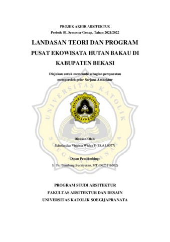 WIDYA P., SCHOLASTIKA VIRGINIA (2022) PUSAT EKOWISATA HUTAN BAKAU DI KABUPATEN BEKASI. S1 thesis, UNIVERSITAS KATOLIK SOEGIJAPRANATA.