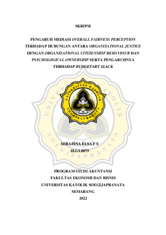 ELSA F S, SERAFINA (2022) PENGARUH MEDIASI OVERALL FAIRNESS PERCEPTION TERHADAP HUBUNGAN ANTARA ORGANIZATIONAL JUSTICE DENGAN ORGANIZATIONAL CITIZENSHIP BEHAVIOUR DAN PSYCHOLOGICAL OWNERSHIP SERTA PENGARUHNYA TERHADAP BUDGETARY SLACK. Other thesis, Universitas Katholik Soegijapranata Semarang.