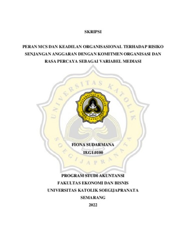 SUDARMANA, FIONA (2022) PERAN MCS DAN KEADILAN ORGANISASIONAL TERHADAP RISIKO SENJANGAN ANGGARAN DENGAN KOMITMEN ORGANISASI DAN RASA PERCAYA SEBAGAI VARIABEL MEDIASI. Other thesis, Universitas Katholik Soegijapranata Semarang.