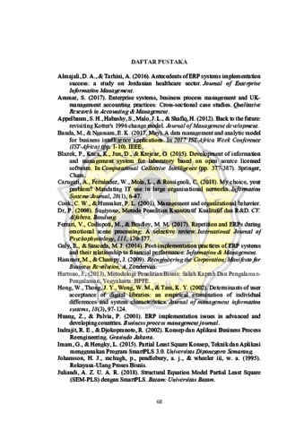 Pranata, Cynthia Arya (2022) ANALISIS DAMPAK REKAYASA ULANG PROSES BISNIS DAN MANAJEMEN PERUBAHAN TERHADAP IMPLEMENTASI BERKELANJUTAN ENTERPRISE RESOURCE PLANNING (ERP): PERSPEKTIF ORIENTASI INFORMASI. Other thesis, Universitas Katholik Soegijapranata Semarang.