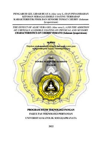 PENGARUH GEL LIDAH BUAYA (Aloe vera L.) DAN PENAMBAHAN KITOSAN SEBAGAI EDIBLE COATING TERHADAP KARAKTERISTIK FISIK DAN SENSORI TOMAT CHERRY (Solanum lycopersicum). THE EFFECT OF ALOE VERA GEL (Aloe vera L.) AND THE ADDITION OF CHITOSAN AS EDIBLE COATING ON PHYSICAL AND SENSORY CHARACTERISTICS OF CHERRY TOMATO (Solanum lycopersicum)