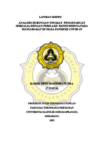 PUTRA, KADEK DENI MAHESHA (2022) ANALISIS HUBUNGAN TINGKAT PENGETAHUAN SEREALIA DENGAN PERILAKU KONSUMSINYA PADA MASYARAKAT DI MASA PANDEMI COVID-19. Other thesis, Unika Soegijapranata Semarang.