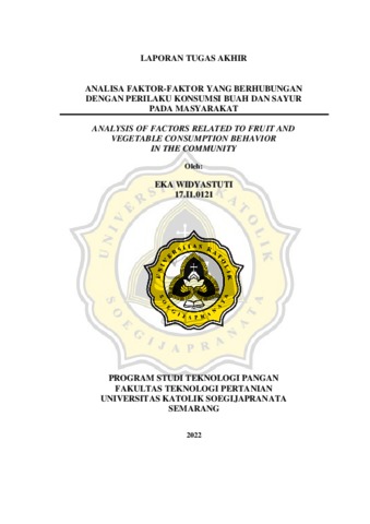 WIDYASTUTI, EKA (2022) ANALISA FAKTOR-FAKTOR YANG BERHUBUNGAN DENGAN PERILAKU KONSUMSI BUAH DAN SAYUR PADA MASYARAKAT. ANALYSIS OF FACTORS RELATED TO FRUIT AND VEGETABLE CONSUMPTION BEHAVIOR IN THE COMMUNITY. Other thesis, Unika Soegijapranata Semarang.