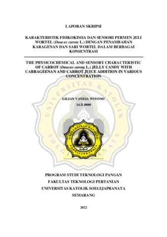 WIYONO, LILIAN VANESA (2022) KARAKTERISTIK FISIKOKIMIA DAN SENSORI PERMEN JELI WORTEL (Daucus carota L.) DENGAN PENAMBAHAN KARAGENAN DAN SARI WORTEL DALAM BERBAGAI KONSENTRASI. THE PHYSICOCHEMICAL AND SENSORY CHARACTERISTIC OF CARROT (Daucus carota L.) JELLY CANDY WITH CARRAGEENAN AND CARROT JUICE ADDITION IN VARIOUS CONCENTRATION. Other thesis, Unika Soegijapranata Semarang.