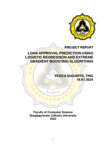 TING, YESICA SUGIARTO (2022) LOAN APPROVAL PREDICTION USING LOGISTIC REGRESSION AND EXTREME GRADIENT BOOSTING ALGORITHMS. S1 thesis, Universitas Katholik Soegijapranata Semarang.