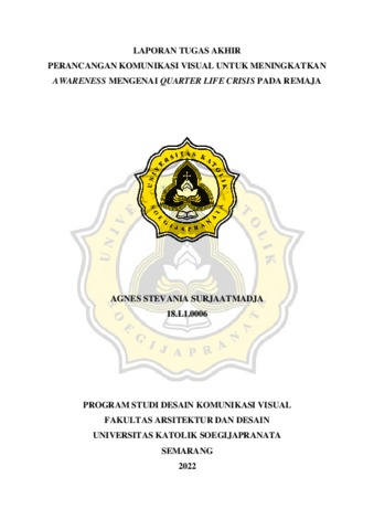 Surjaatmadja, Agnes Stevania (2022) PERANCANGAN KOMUNIKASI VISUAL UNTUK MENINGKATKAN AWARENESS MENGENAI QUARTER LIFE CRISIS PADA REMAJA. Other thesis, Unika Soegijapranata Semarang.